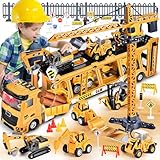 • Buen Material: este juego de juguetes para camiones de construcción está hecho de material de alta calidad, aunque es de plástico, es resistente y usable. Y los juguetes de vehículos son de...