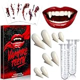 - Amplia aplicación: los dientes de vampiro de Halloween son ideales para juegos de rol en fiestas como vampiro, hombre lobo, zombi o como accesorio de disfraz de cosplay. También se pueden enviar...