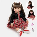 - 🦀🦀DISEÑO REALISTA: Muñeca con aspecto realista, muñecas reborn silicona blanda cabello largo y vestido a cuadros rojos, perfecta para juegos imaginativos