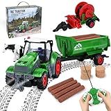 - 🚜🚜【Tractor Teledirigido】Recibirá: tractor juguete grande*1, remolque trasero*1, carrete de riego*1, mando a distancia*1, destornillador*1, madera*4, montones de heno*2, res*1, pilas*2,...